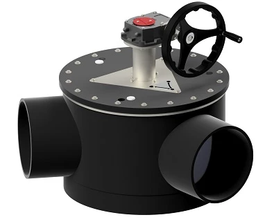 PL-3WAY is a unique 3-way valve, which can be used for water/fluids without solid materials. The valve is available in dimensions from ø90mm to ø400mm. Besides a smooth inner surface, the valve also has a large radius on the bend inside, so that the fish can be gently passed through the valve. The valve is sealed from the bend to the blinded spigot.